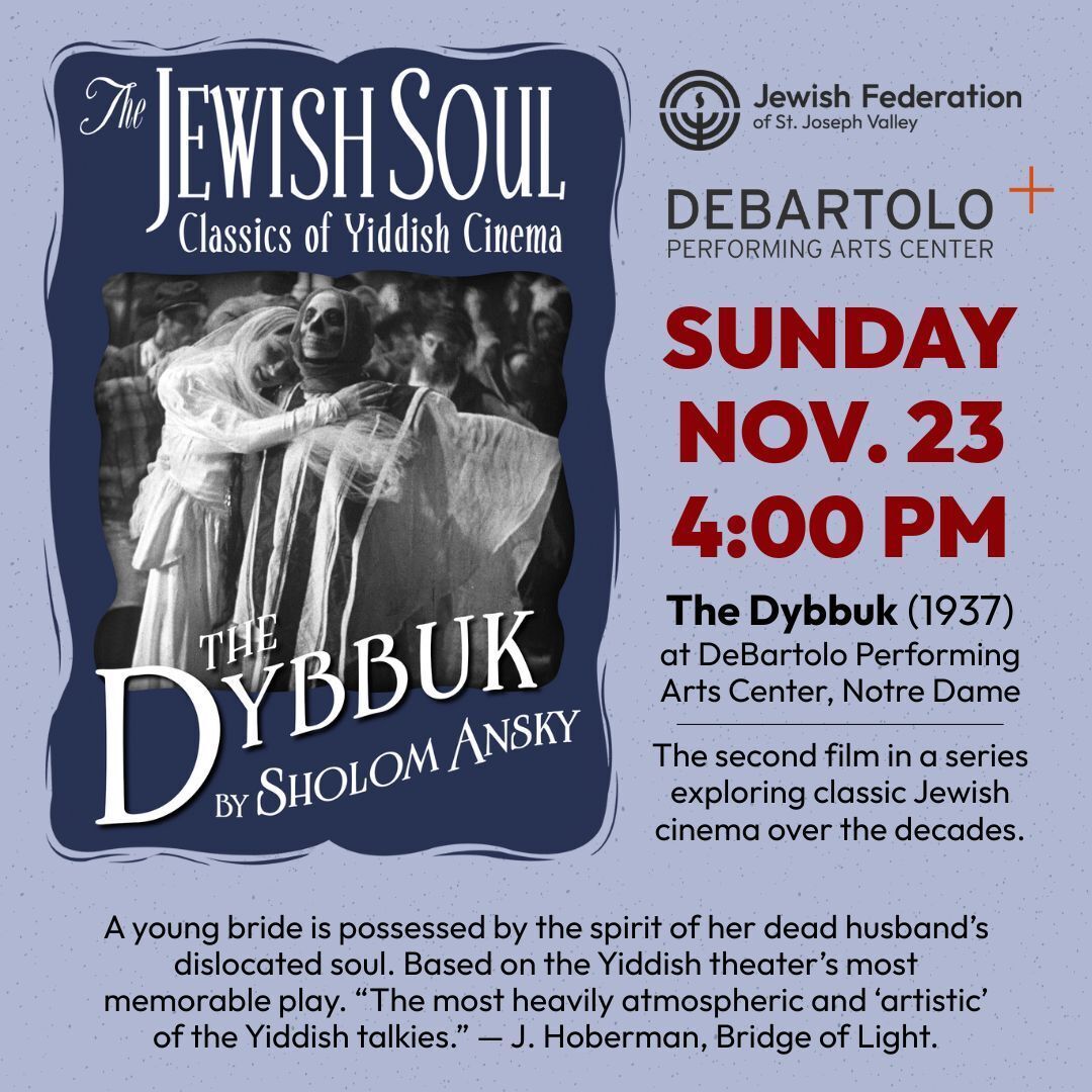 Join the Jewish Federation at the University of Notre Dame's DeBartolo Performing Arts Center for a special screening of the classic Yiddish film, The Dybbuk (1937).