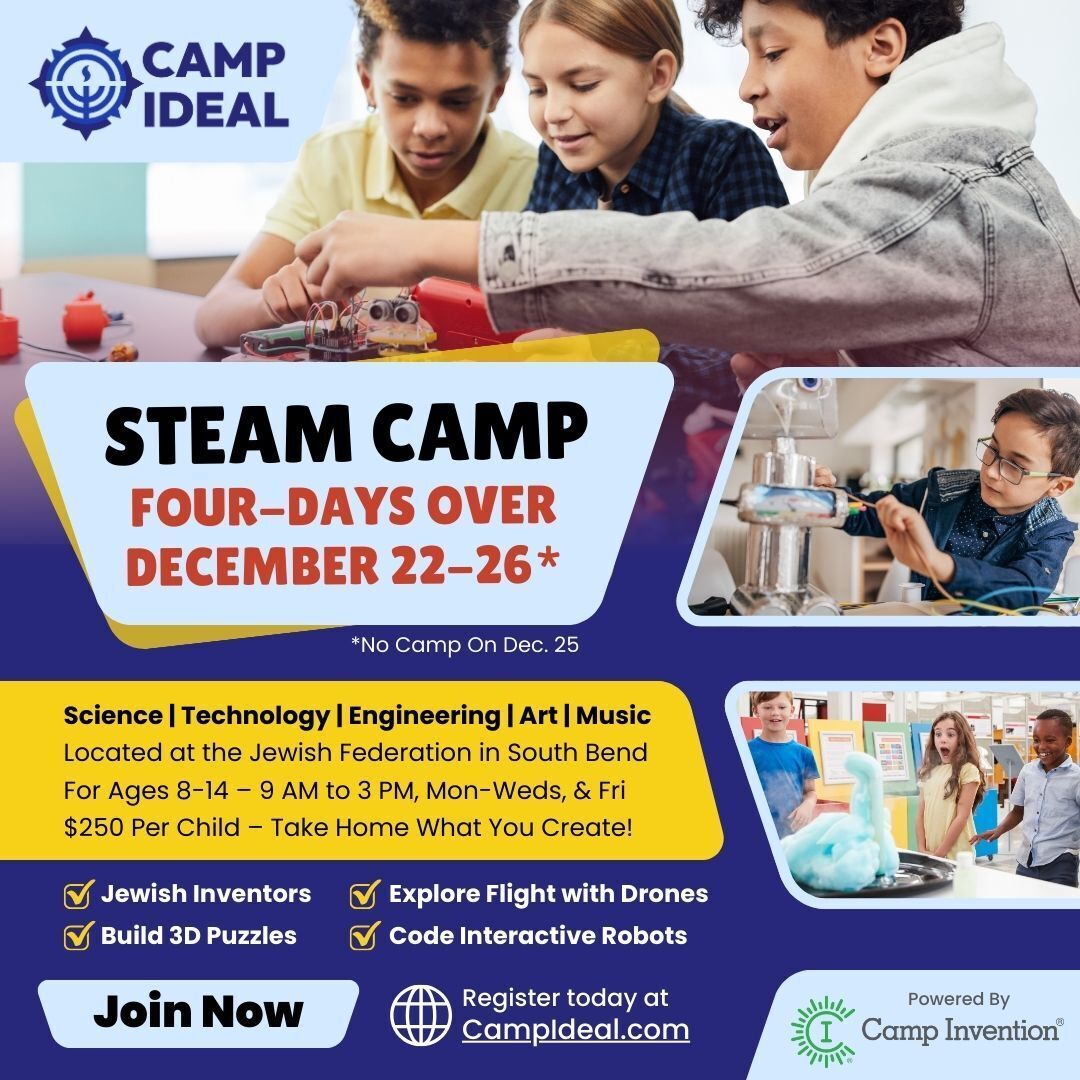 For kids ages 8-14, with a focus on Science, Technology, Engineering, Art, & Music, through a Jewish lens.